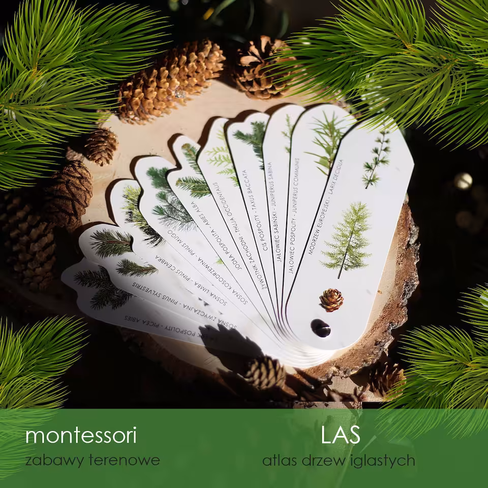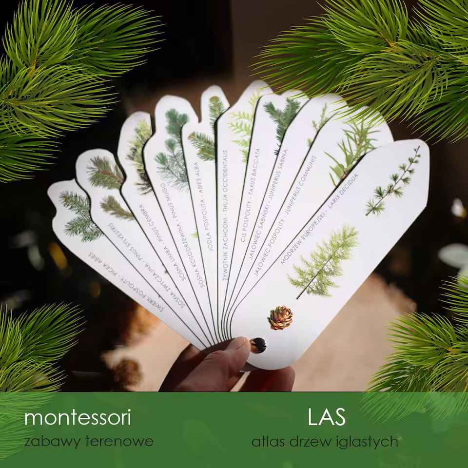 Atlas obrotowy do identyfikacji 10 różnych gatunków drzew iglastych, doskonały do zabierania na spacery do lasu, dzięki czemu łatwiej rozpoznać spotykane tam drzewa iglaste.