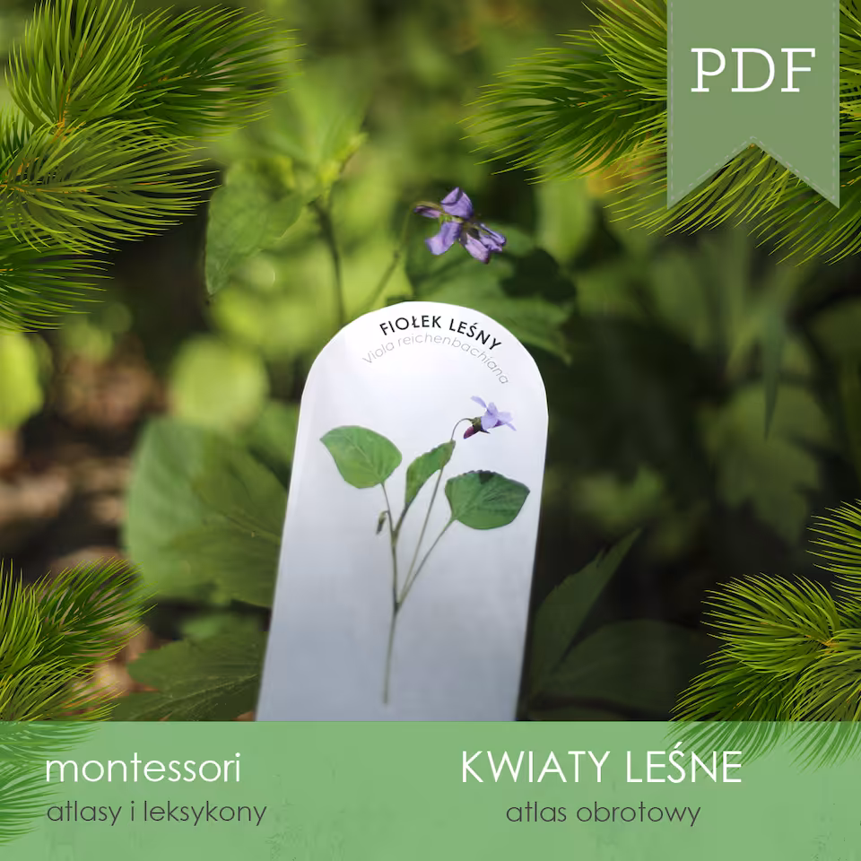 Atlas obrotowy, z pomocą którego poznamy 12 kwiatów leśnych spotykanych w polskich lasach.