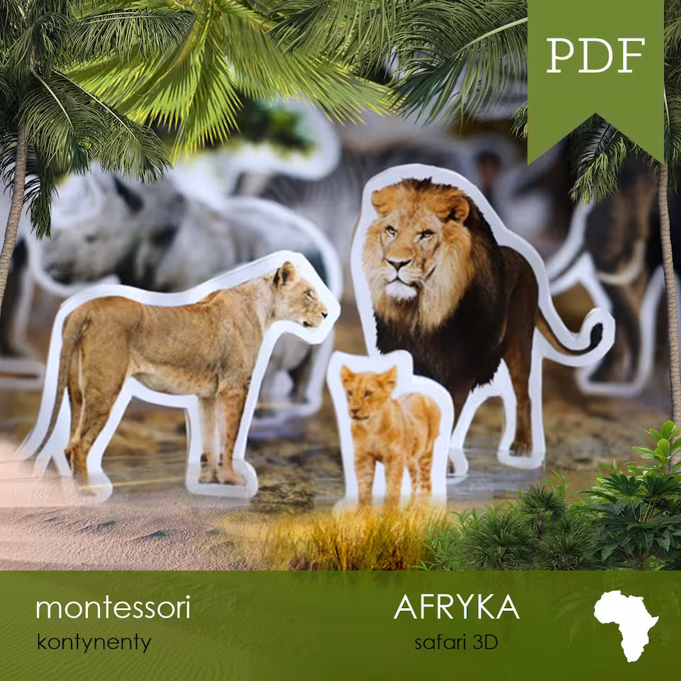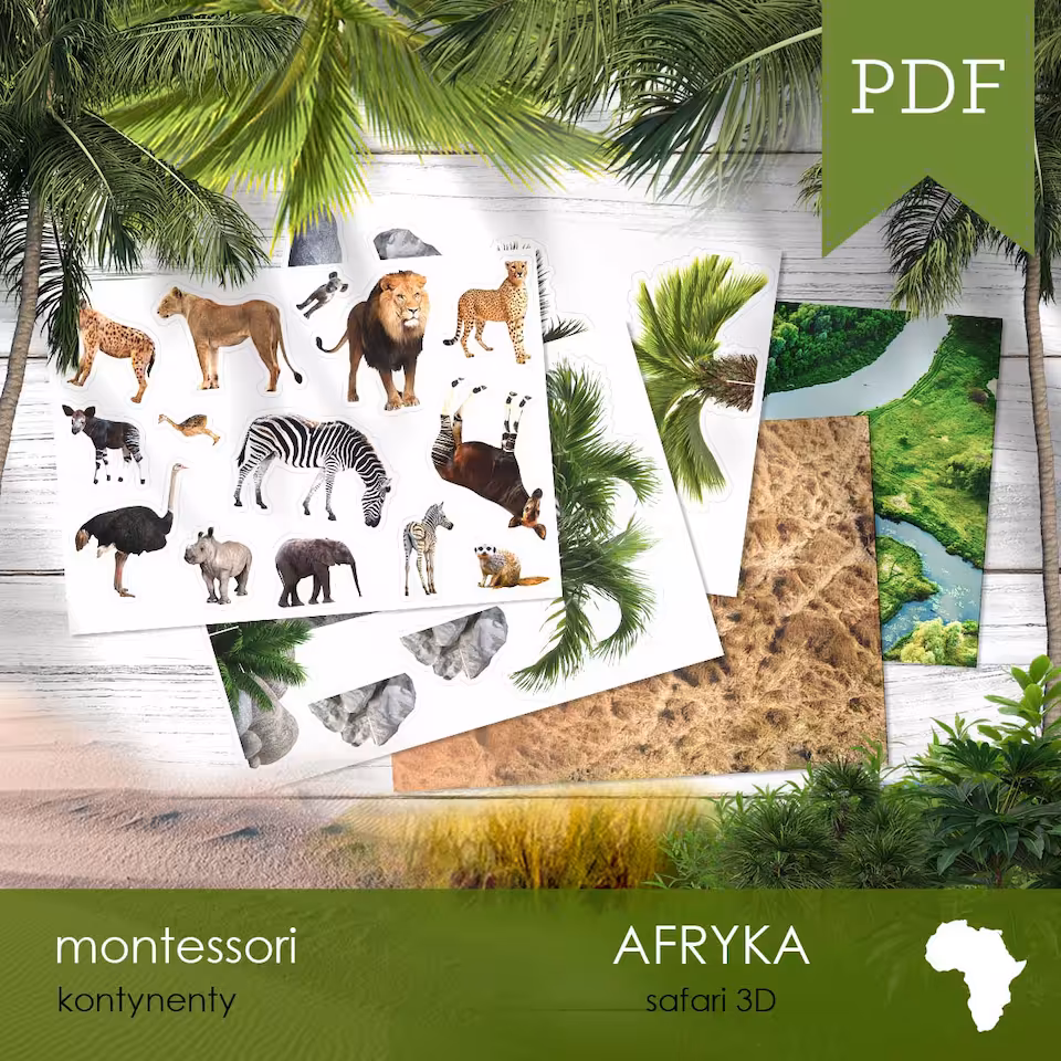Materiał jest częścią 370-arkuszowego 12-zadaniowego zestawu AFRYKA - Zestaw edukacyjny 3D.