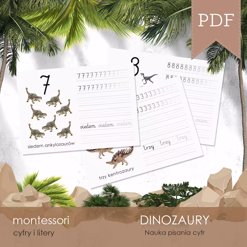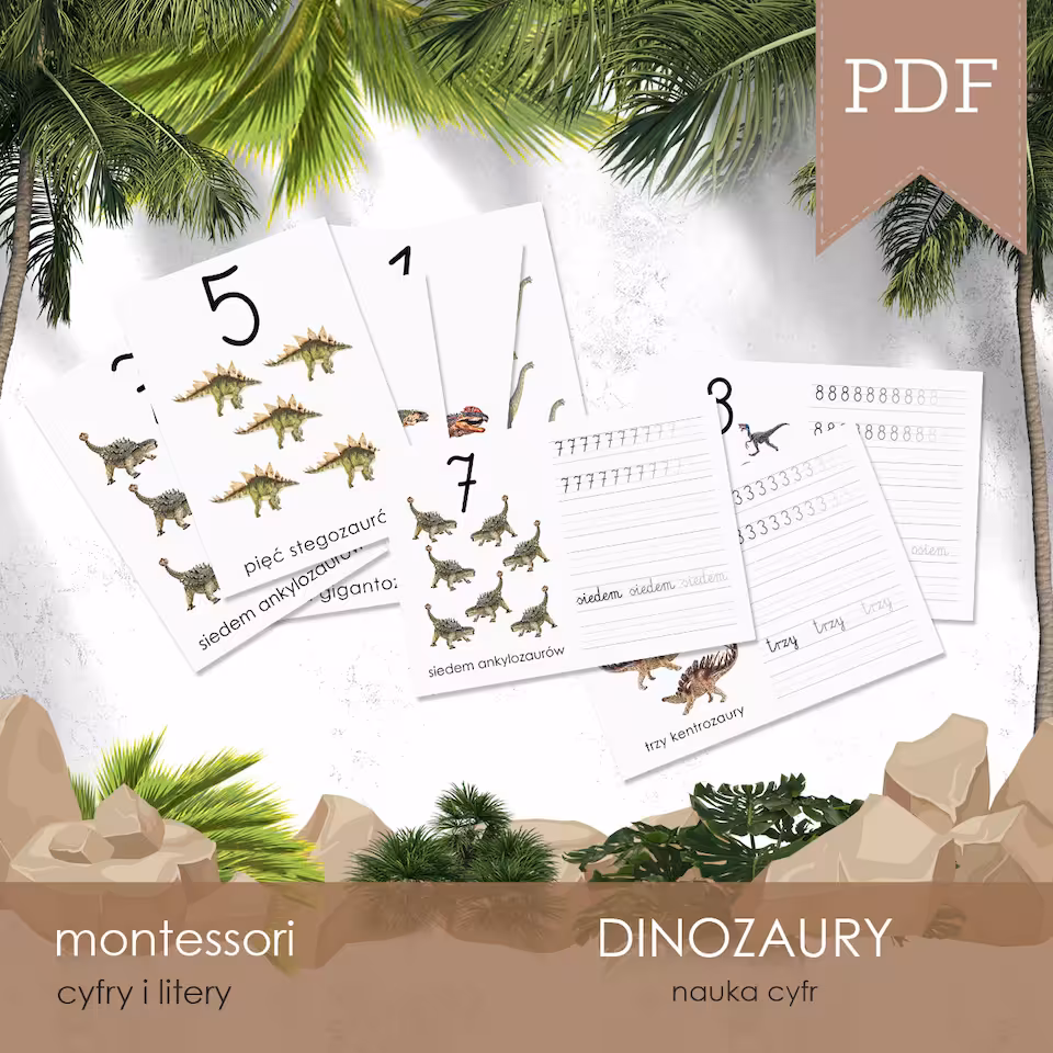 Cyfry są częścią 350-arkuszowego 12-zadaniowego zestawu DINOZAURY - Zestaw edukacyjny 3D.