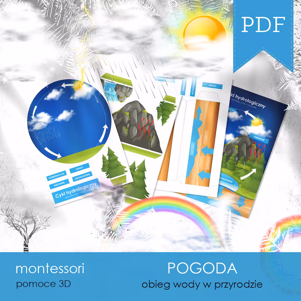 Materiał jest częścią 110-arkuszowego 12-zadaniowego zestawu POGODA - Zestaw edukacyjny 3D.