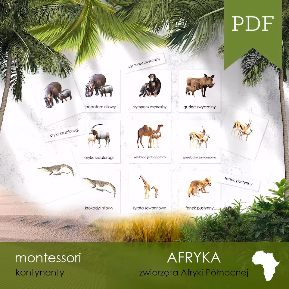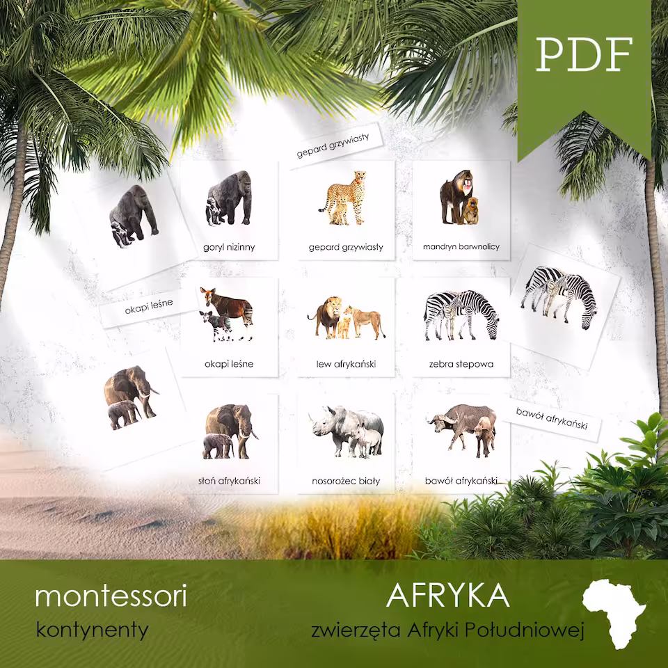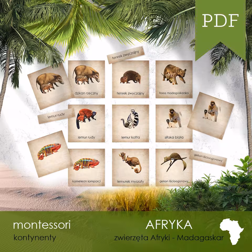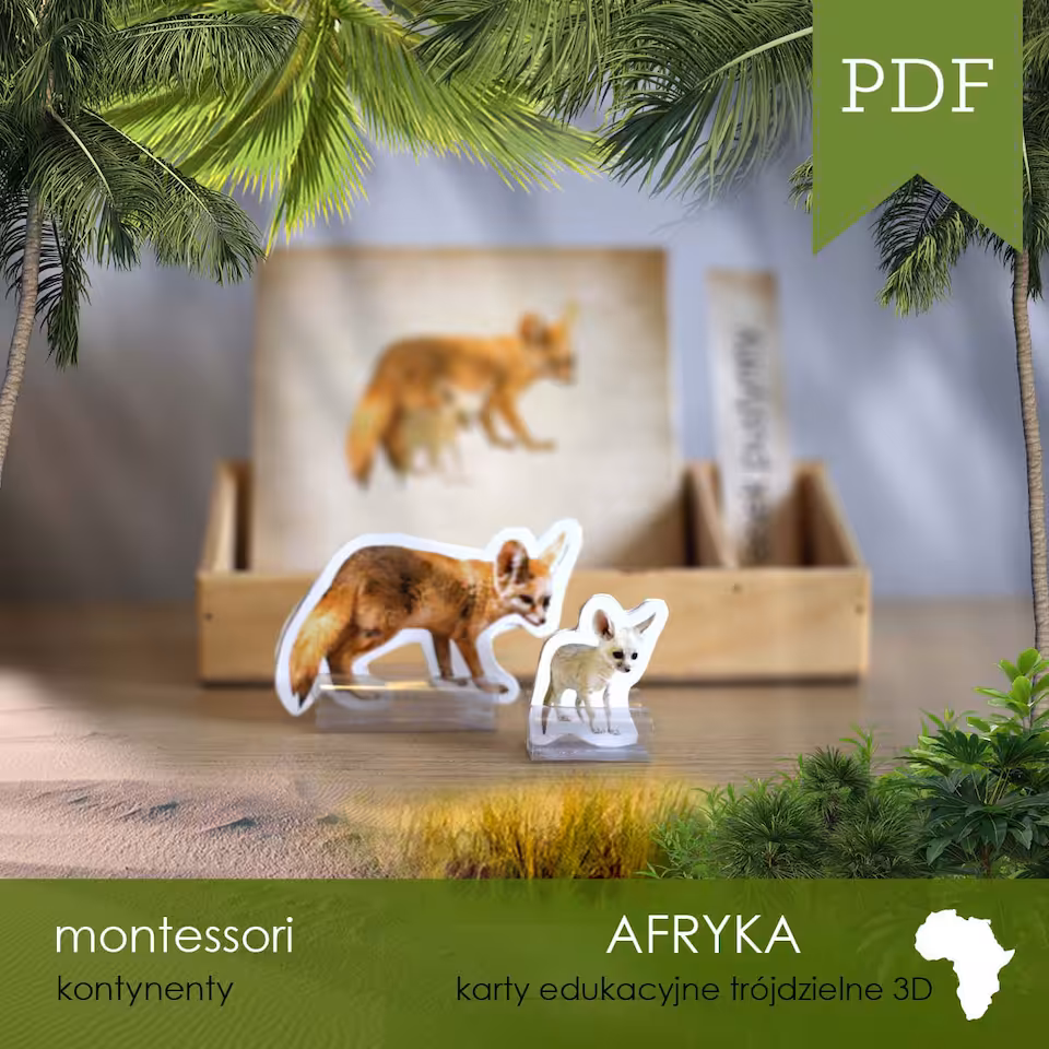 Materiał jest częścią 370-arkuszowego 12-zadaniowego zestawu AFRYKA - Zestaw edukacyjny 3D.