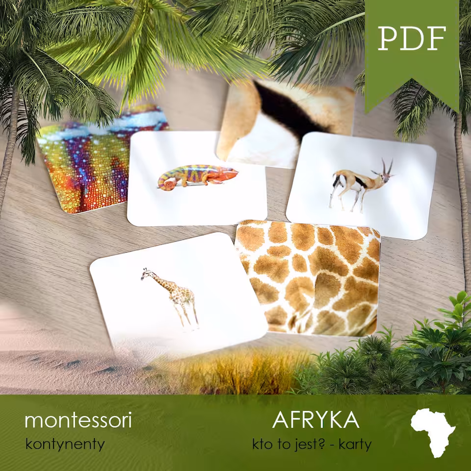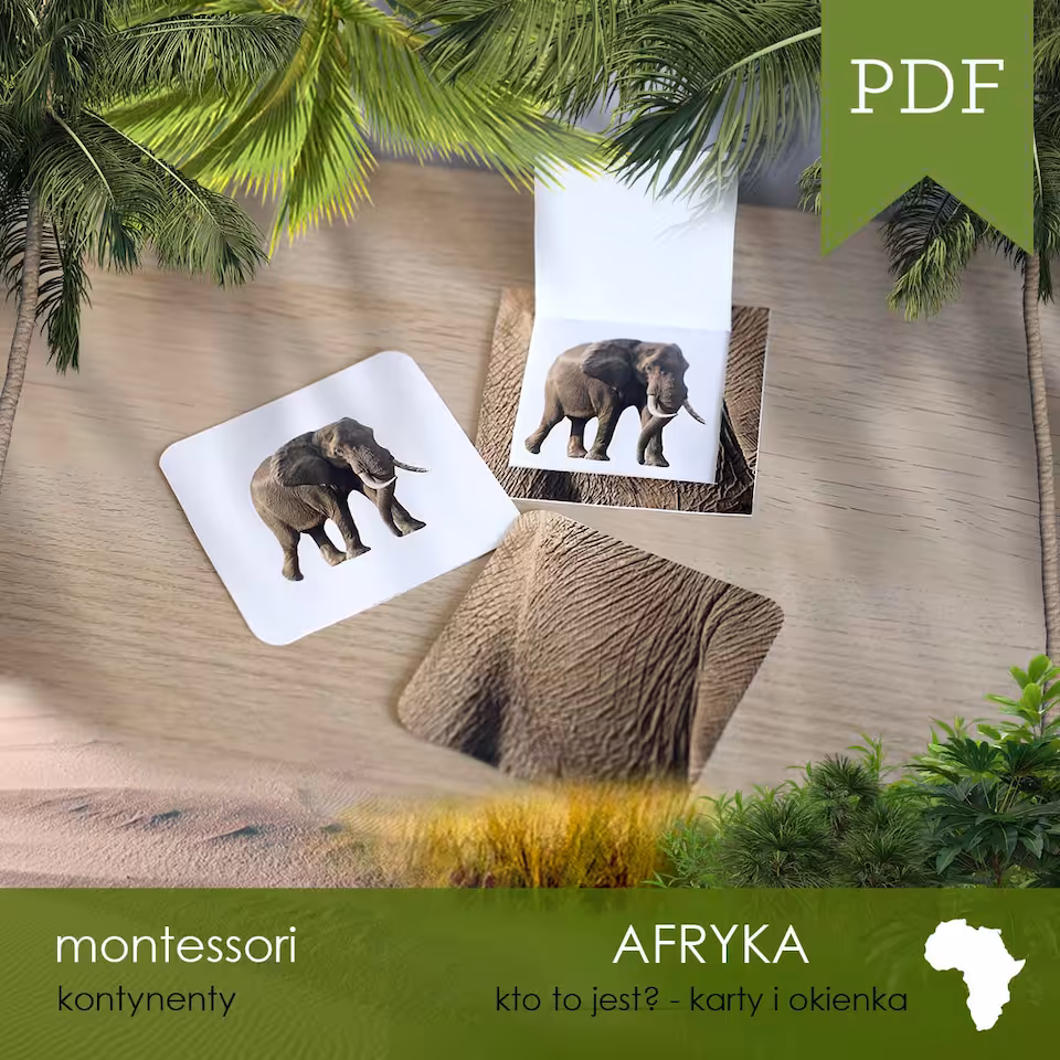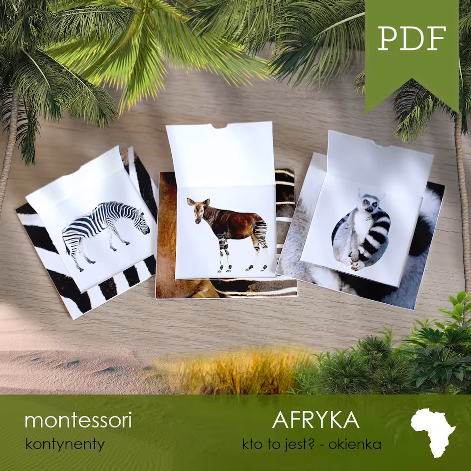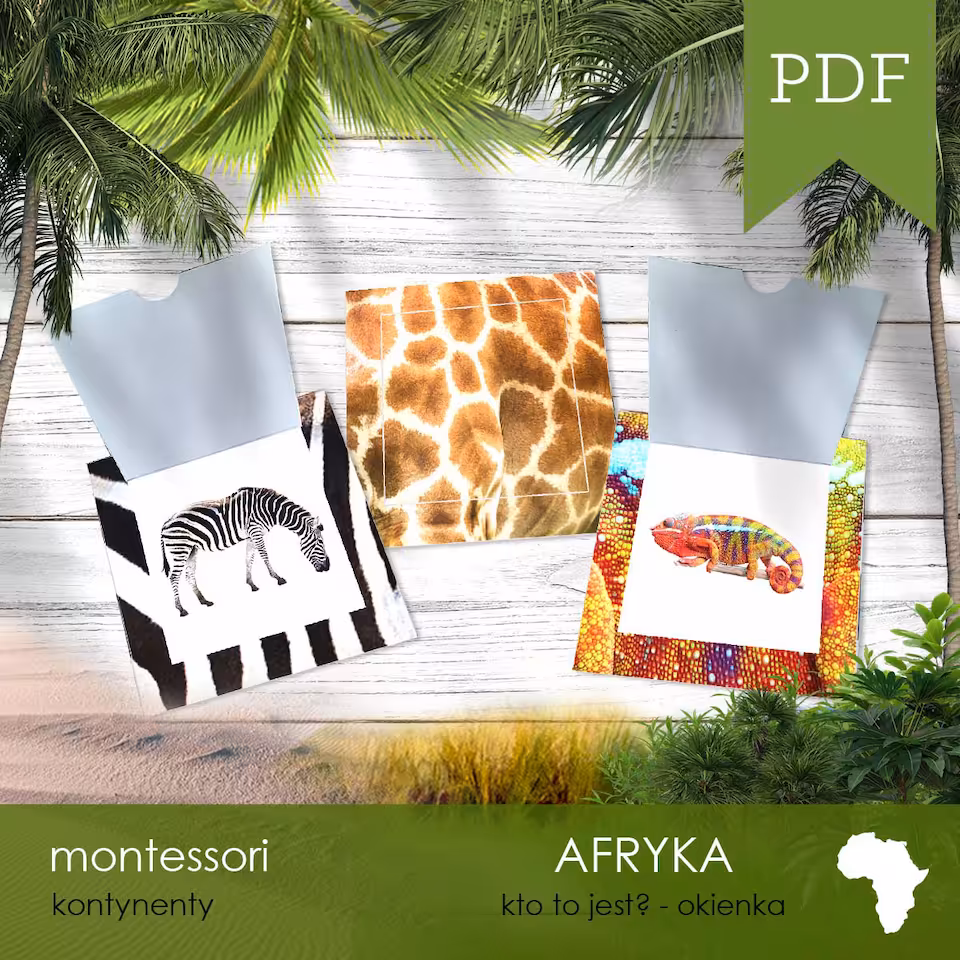 Materiał jest częścią 370-arkuszowego 12-zadaniowego zestawu AFRYKA - Zestaw edukacyjny 3D.