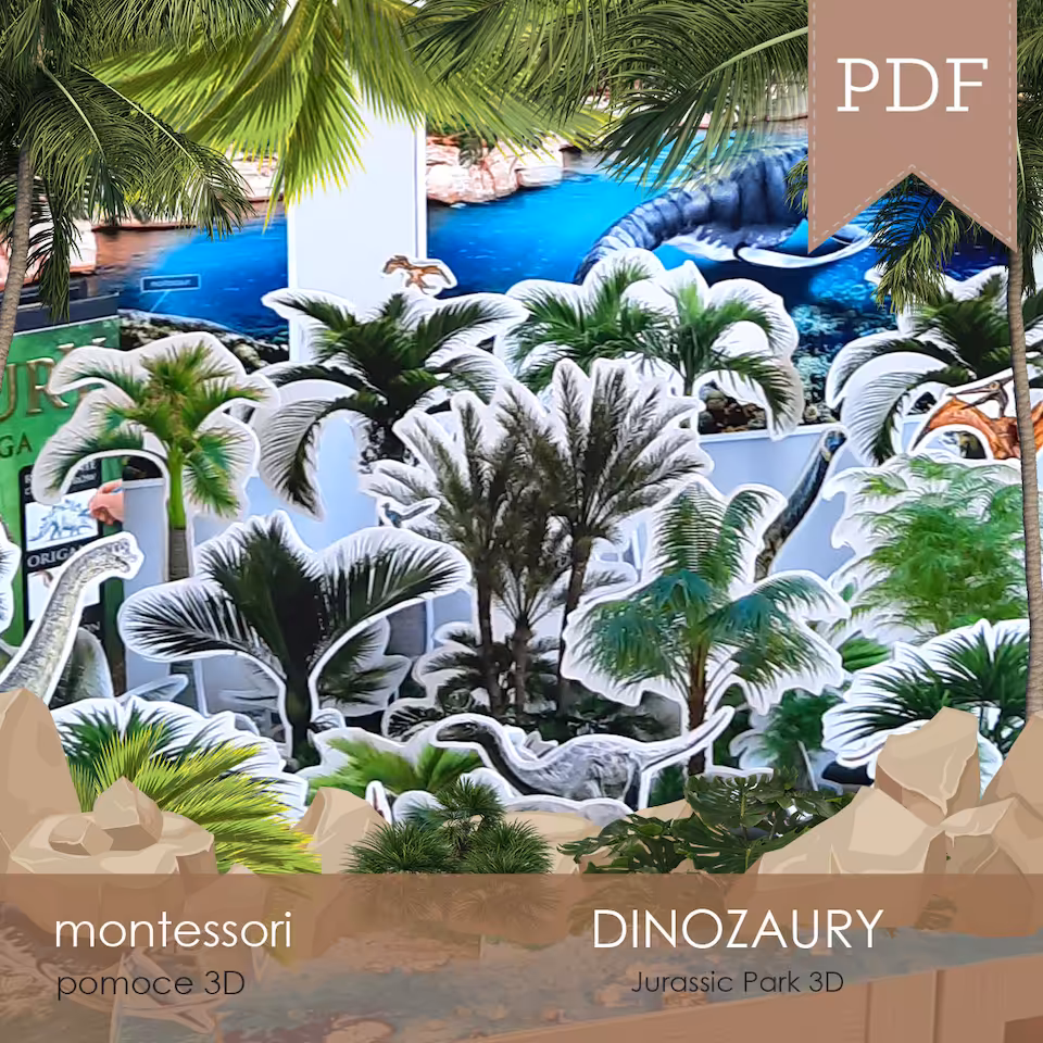 Prawdziwy Jurassic Park 3D czyli Park Jurajski ze stojącymi figurkami 12 najpopularniejszych dinozaurów okresu jury ukrytych w gęstym lesie palm i egzotycznych krzewów, które można ustawiać dowolnie na olbrzymiej macie modułowej z lasem, skałami i zbiornikami wodnymi.