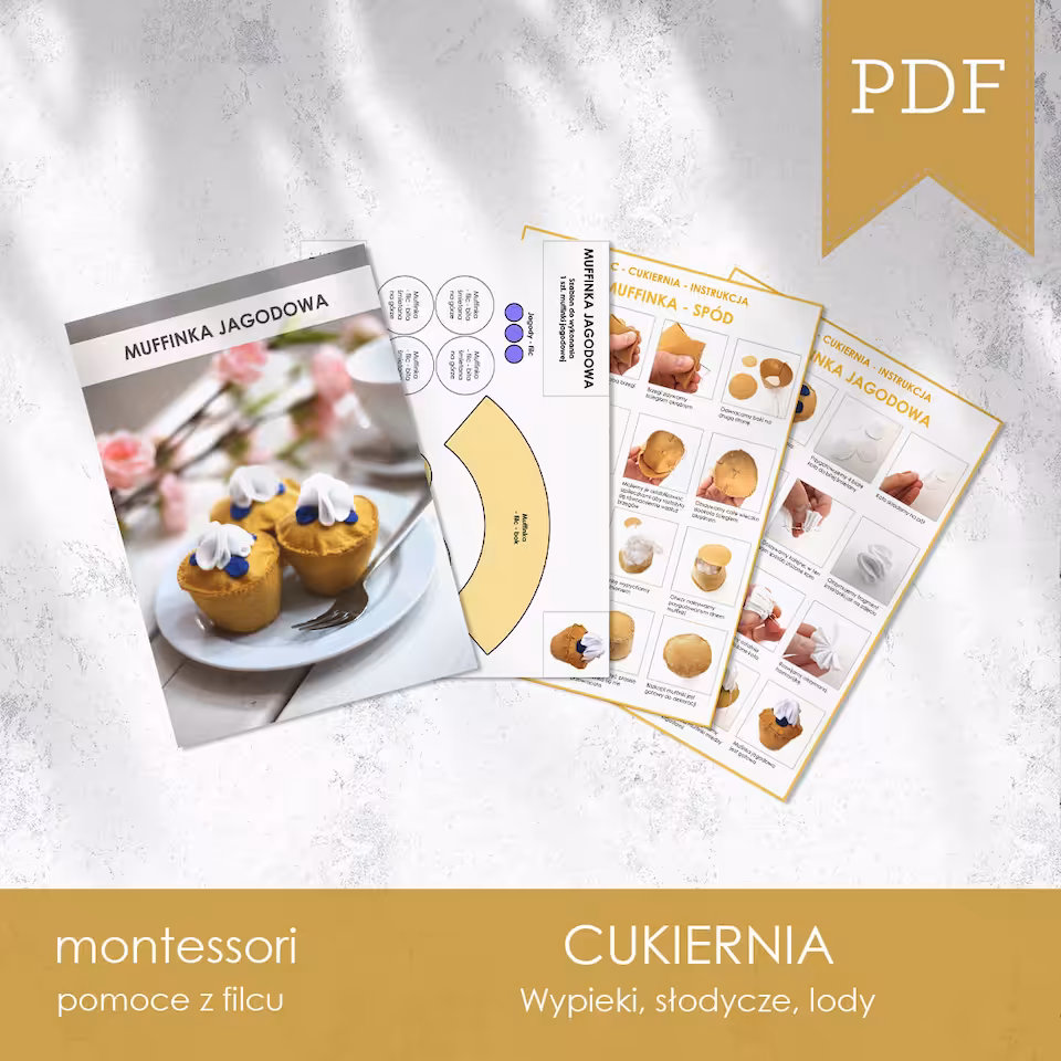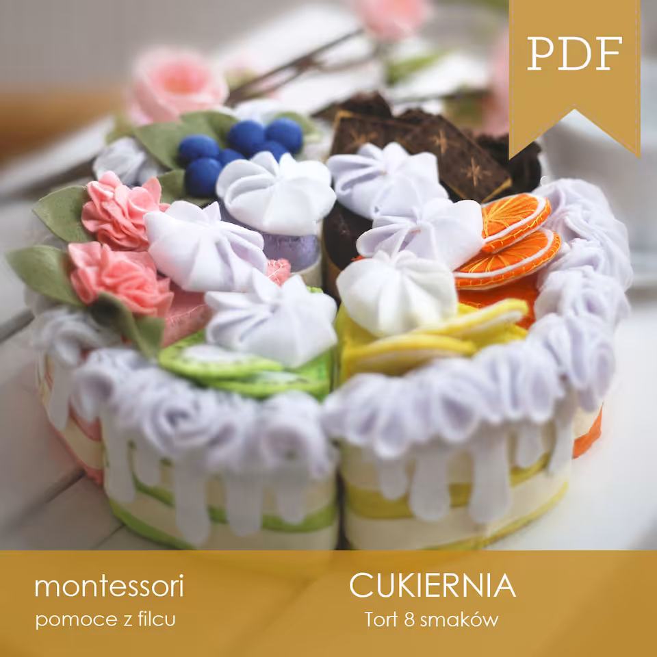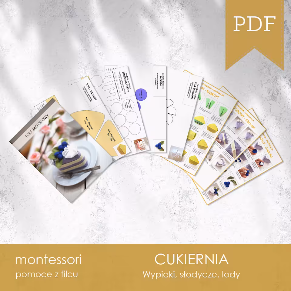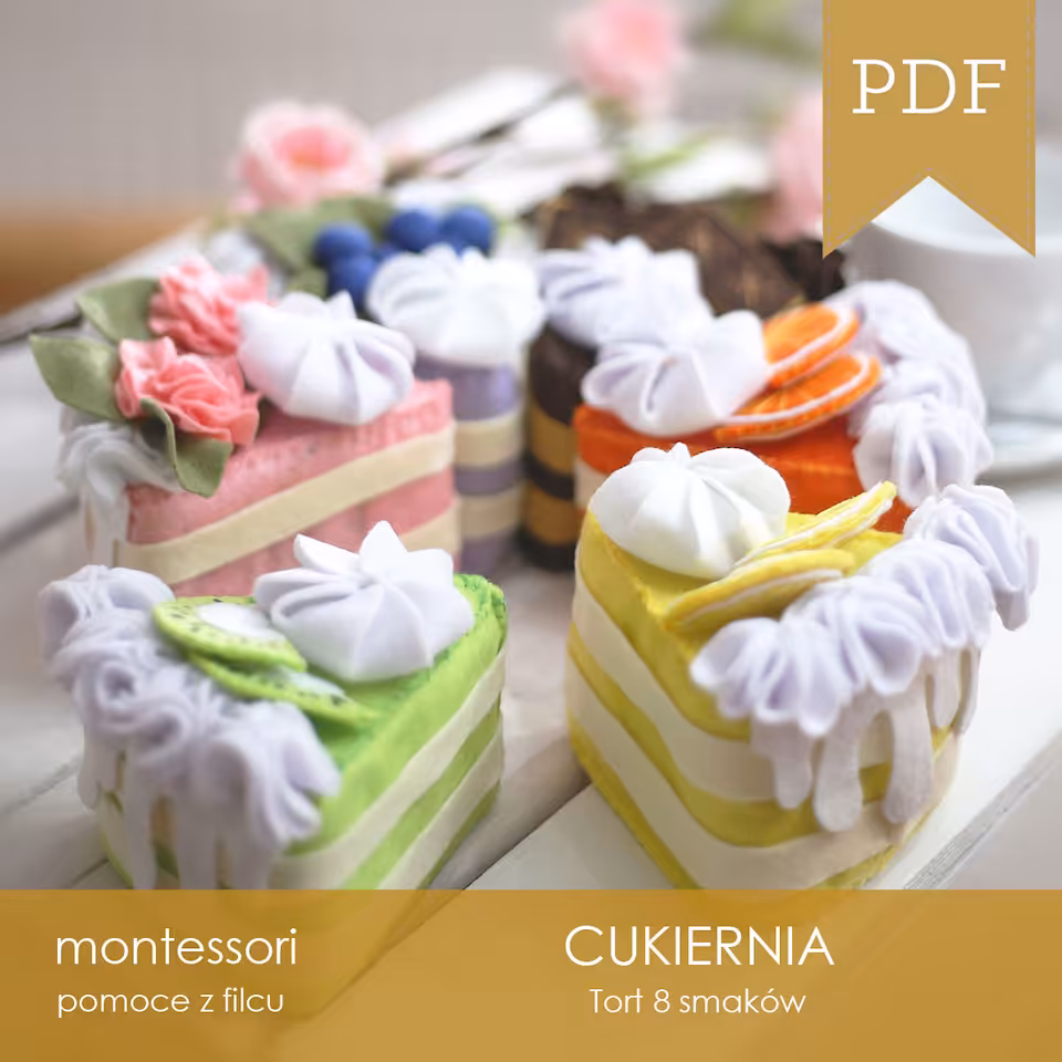 Materiał jest częścią ponad 100-arkuszowego, 15-produktowego zestawu edukacyjnego CUKIERNIA - FILC - Zestaw kreatywny DIY.