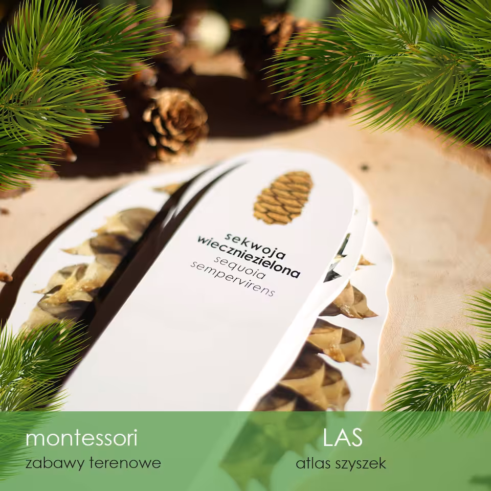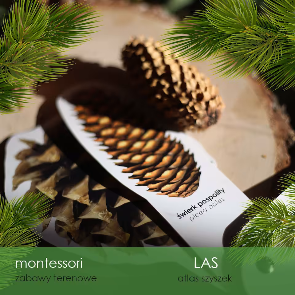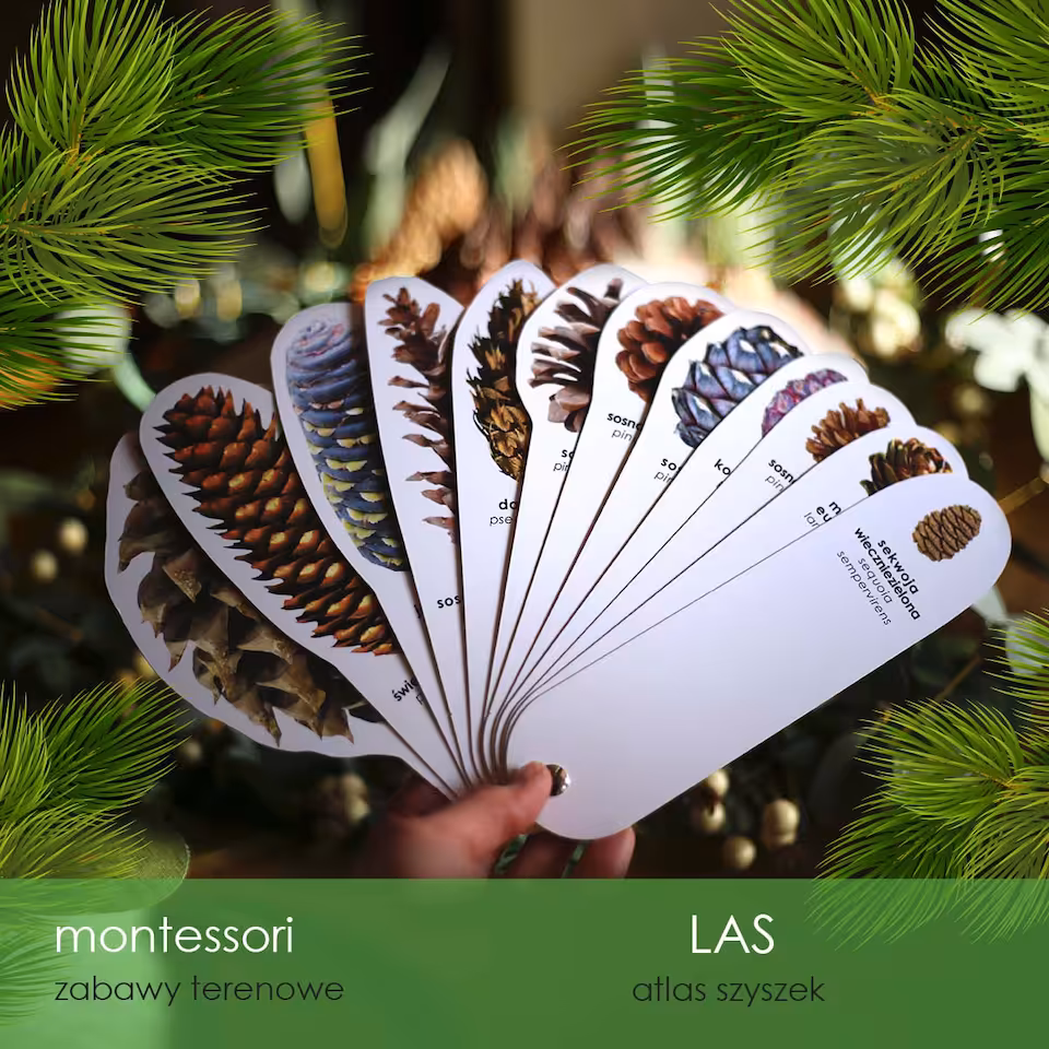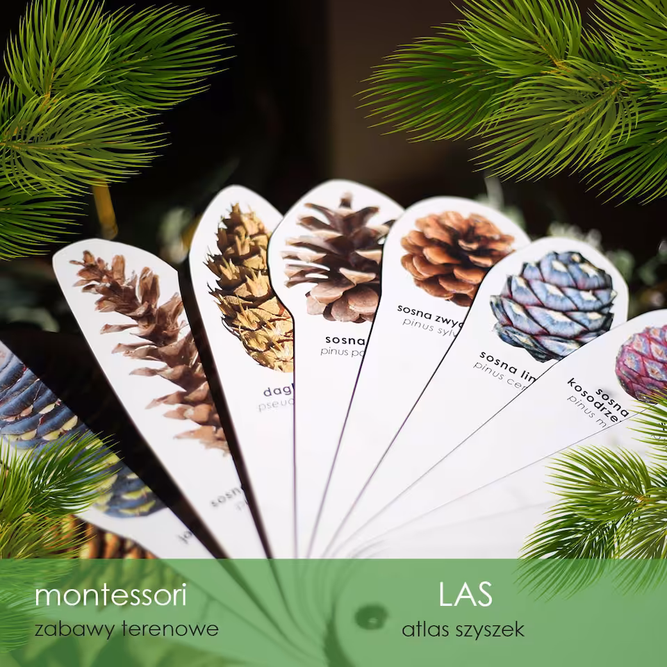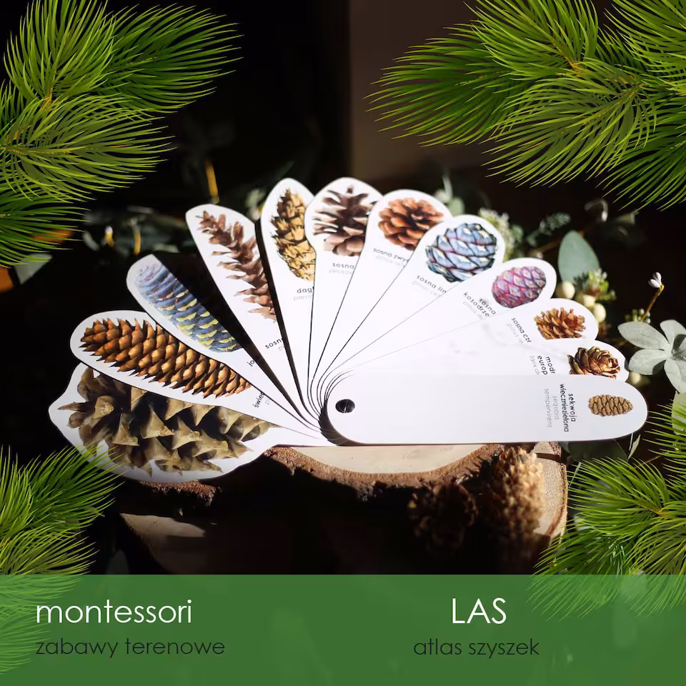 Atlas obrotowy do identyfikacji szyszek z 12 różnych gatunków drzew iglastych, doskonały do zabierania na spacery do lasu, dzięki czemu łatwiej rozpoznać pochodzenie znalezionych szyszek. Zdjęcia w atlasie odwzorowują wymiary szyszek 1:1, dzięki czemu jeszcze łatwiej je identyfikować.